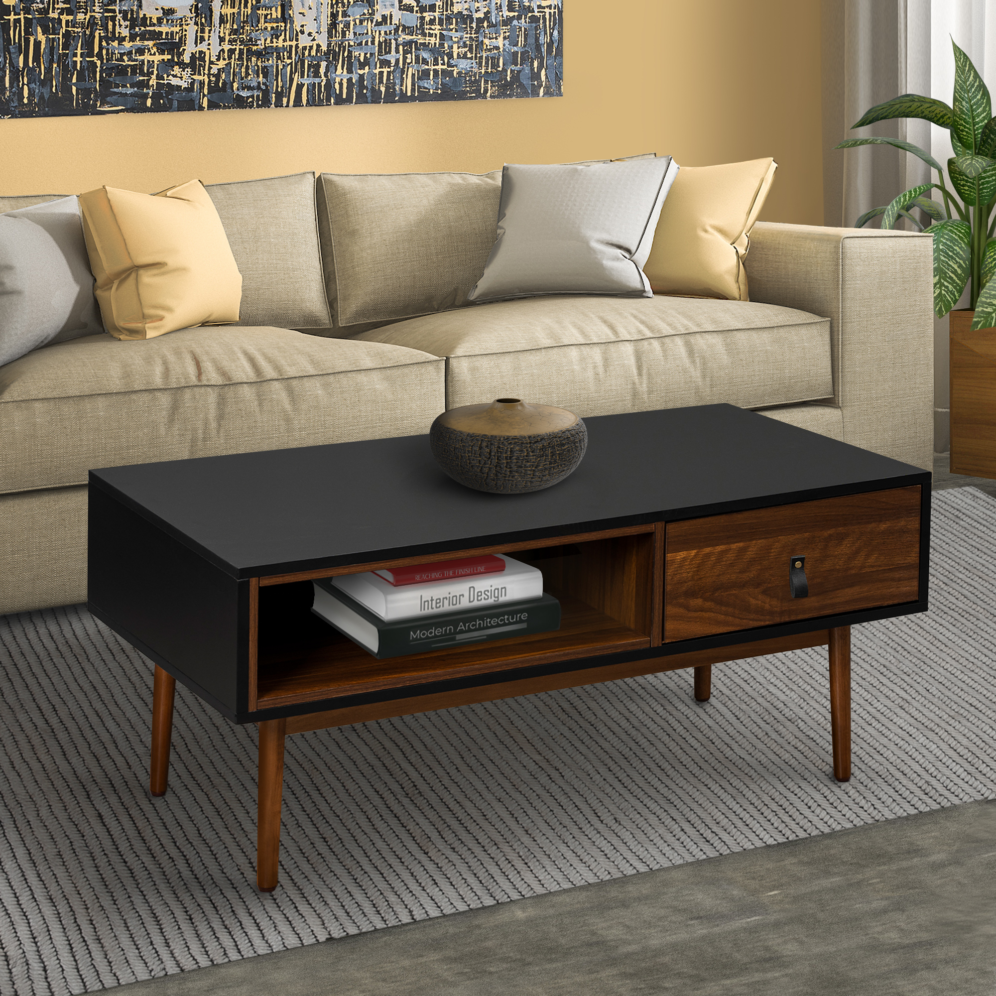 Good Gracious Black Coffee Table With Storage Shelf And Drawer Modern Cocktail Table For Living Room And Small Spaces Walmart Com